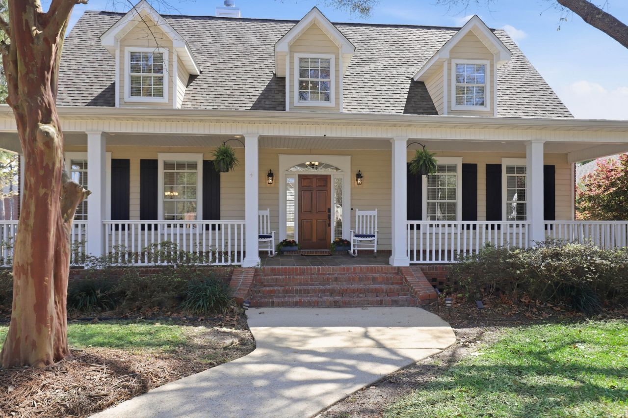 Step into a welcoming foyer with a convenient half bath and coat closet. The dining room overlooks the covered front porch, while the living room features soaring two-story ceilings, built-ins, a wood-burning fireplace, and views of the large back deck. The updated kitchen offers a Bosch five-burner gas cooktop, farmhouse sink, stainless appliances, pantry, and a breakfast nook with bench seating. A nearby hallway leads to an oversized laundry room with utility sink and garage access. The first-floor primary suite includes two large closets and a bath with double vanity and custom walk-in shower. Upstairs are two bedrooms with ensuite baths...read more